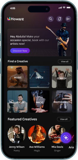 Our vision is to create a seamless platform that connects artists with event organizers and fans, making the booking process simple, transparent, and efficient. We aim to empower artists by giving them greater visibility and control over their schedules, while offering organizers and audiences easy access to talent. Through intuitive design, secure transactions, and smart tools, Howwe will become the go-to destination for discovering, booking, and collaborating with artists.